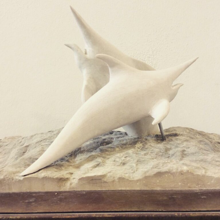 Untersberger Marmor (Schwertfische) auf Adneter Marmor (Meer)